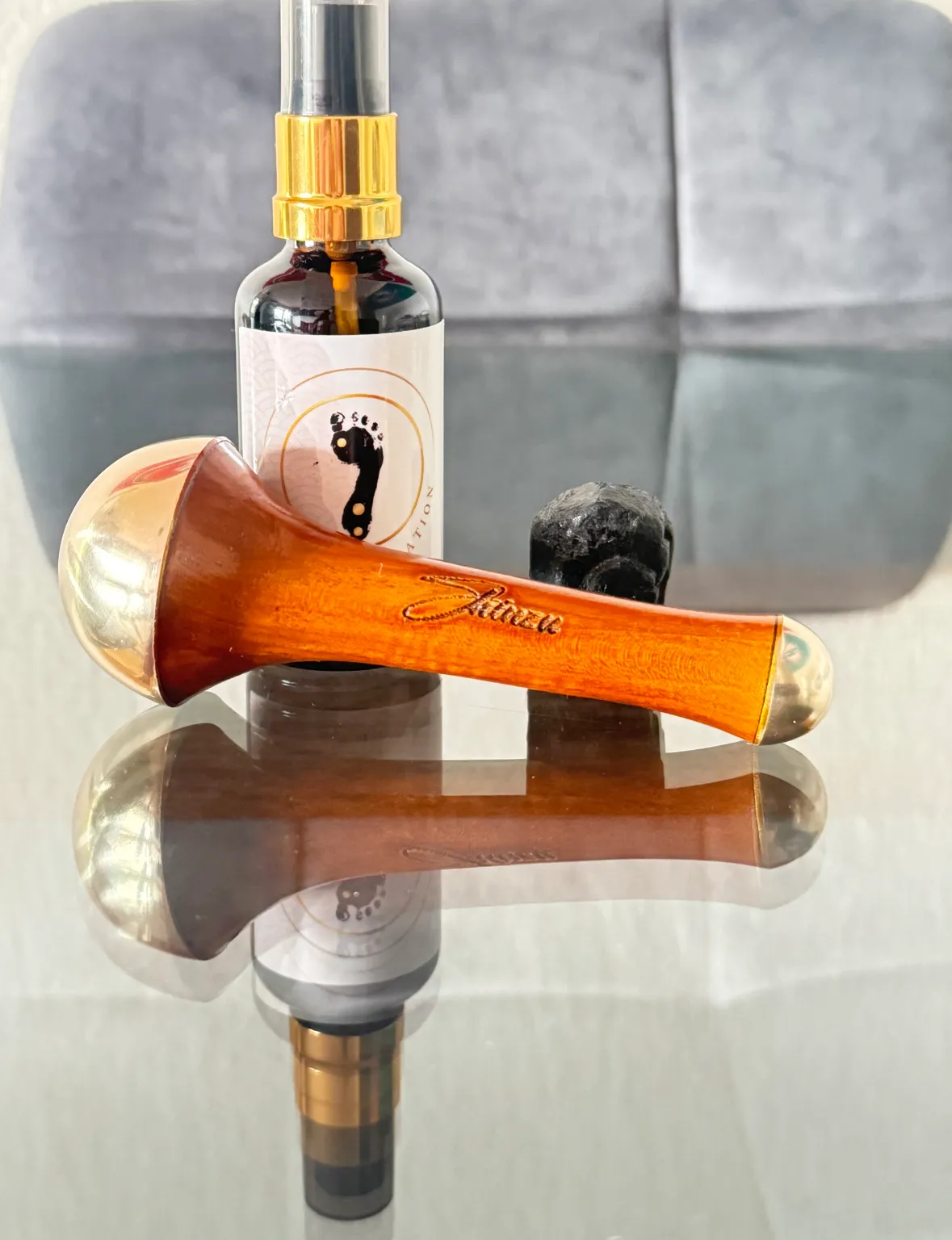 Ce soin se pratique sur les pieds, composé d'une partie manuelle avec les mains et de l'huile puis dans un second temps le praticien utilise un outil ancestral en médecine ayurvédique nommé KANSA. KANSA... la voie holistique vers la relaxation profonde. Il s'agit d'une baguette en bois composée en ses deux extremités du " métal guérisseur" en Inde, le bronze, alliage millénaire de cuivre aux propriétés anti inflammatoires, stimulantes, détox et d'étain aux propriétés antibactériennes et antifongiques. Bienfaits : -Stimule les point marma (des points vitaux du corps selon l'Ayurvéda, ils sont au nombre de 107 répartis sur le corps) . Les marma sont des "carrefours" de nerfs, muscles tendons, os. ceux sont des points ou l'énergie vitale peut être redirigé et ou le flux énergétique est essentiel. Ces points sont connectés aux émotions et traumatismes, favorisant tout en douceur clarté mentale et relaxation profonde. - Equilibre les doshas... c'est l'énergie vitale qui gouverne les processus physiologiques et psychologiques du corps humain. Il y en a 3 . VATA : énergie cinétique... air et éther (espace), c'est le mouvement la vitesse, l'élimination PITTA : énergie de transformation composée de feu et d'eau, responsable de la digestion et des prcessus chimiques. KAPHA : énergie de cohésion composée de la terre et l'eau, c'est la structure la stabilité - Détente profonde - harmonisation corps et esprit
